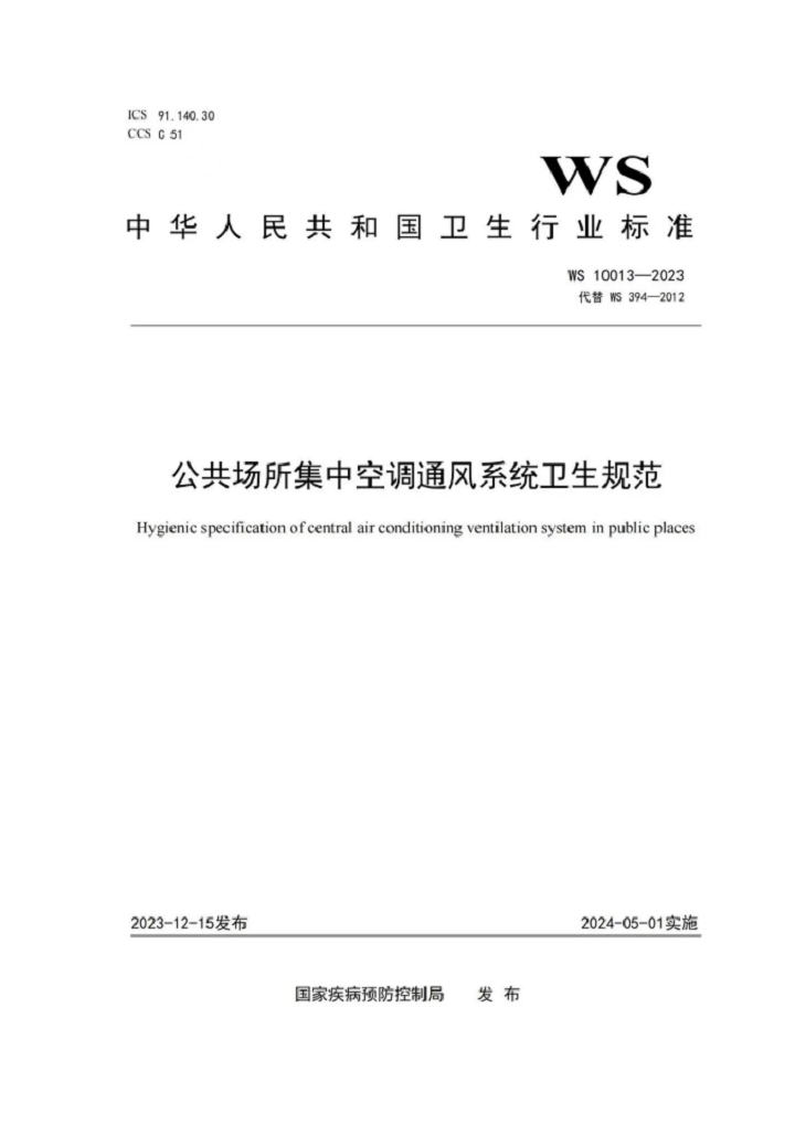 WS 10013-2023公共场所集中空调通风系统卫生规范