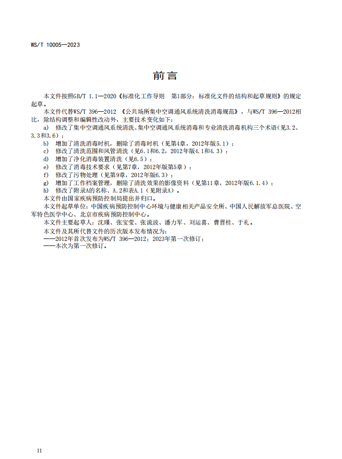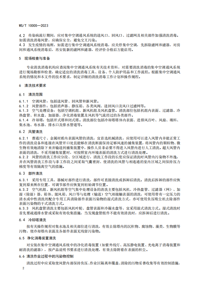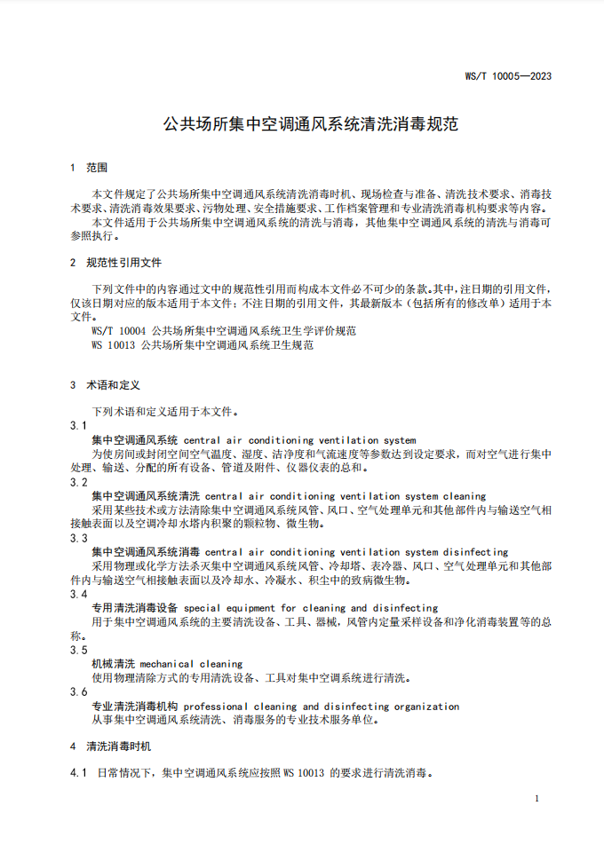 (WS T10005-2023)《公共场所集中空调通风系统清洗 消毒规范》